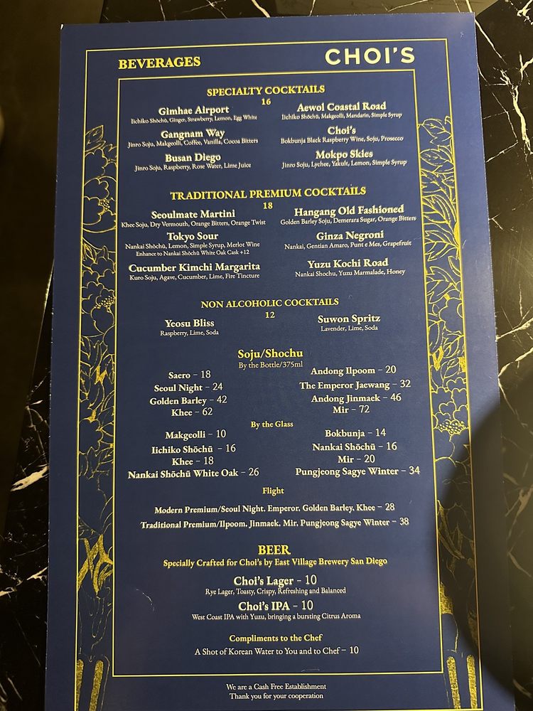 Welcome to Choi's, a standout cocktail bar in San Diego that beautifully marries Asian fusion with Korean flavors. Located at 100 Park Plaza, this upmarket establishment features a stylish interior that sets the stage for memorable dining experiences, ideal for special occasions.